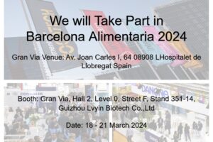 ¡Nos complace anunciar que Guizhou Lvyin Biotech Co., Ltd. participará en la reconocida feria Alimentaria 2024, un evento clave que reúne lo mejor de la industria de alimentos, bebidas y gastronomía. Esta exposición sirve como testimonio de la vitalidad y la innovación dentro del sector alimentario global, ofreciendo una oportunidad única para que los profesionales se conecten, aprendan y crezcan.
